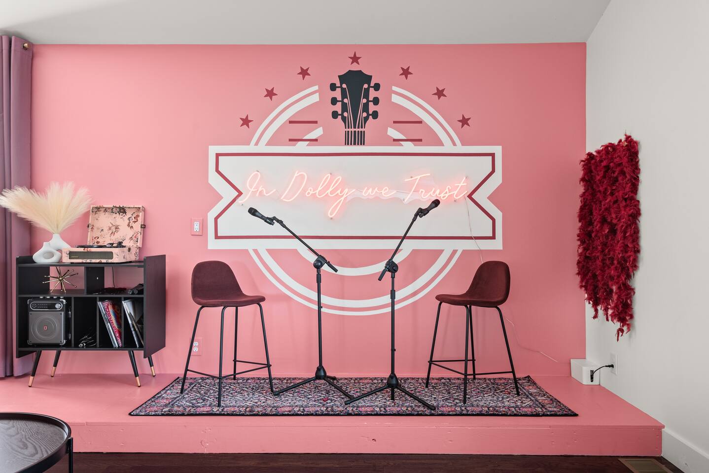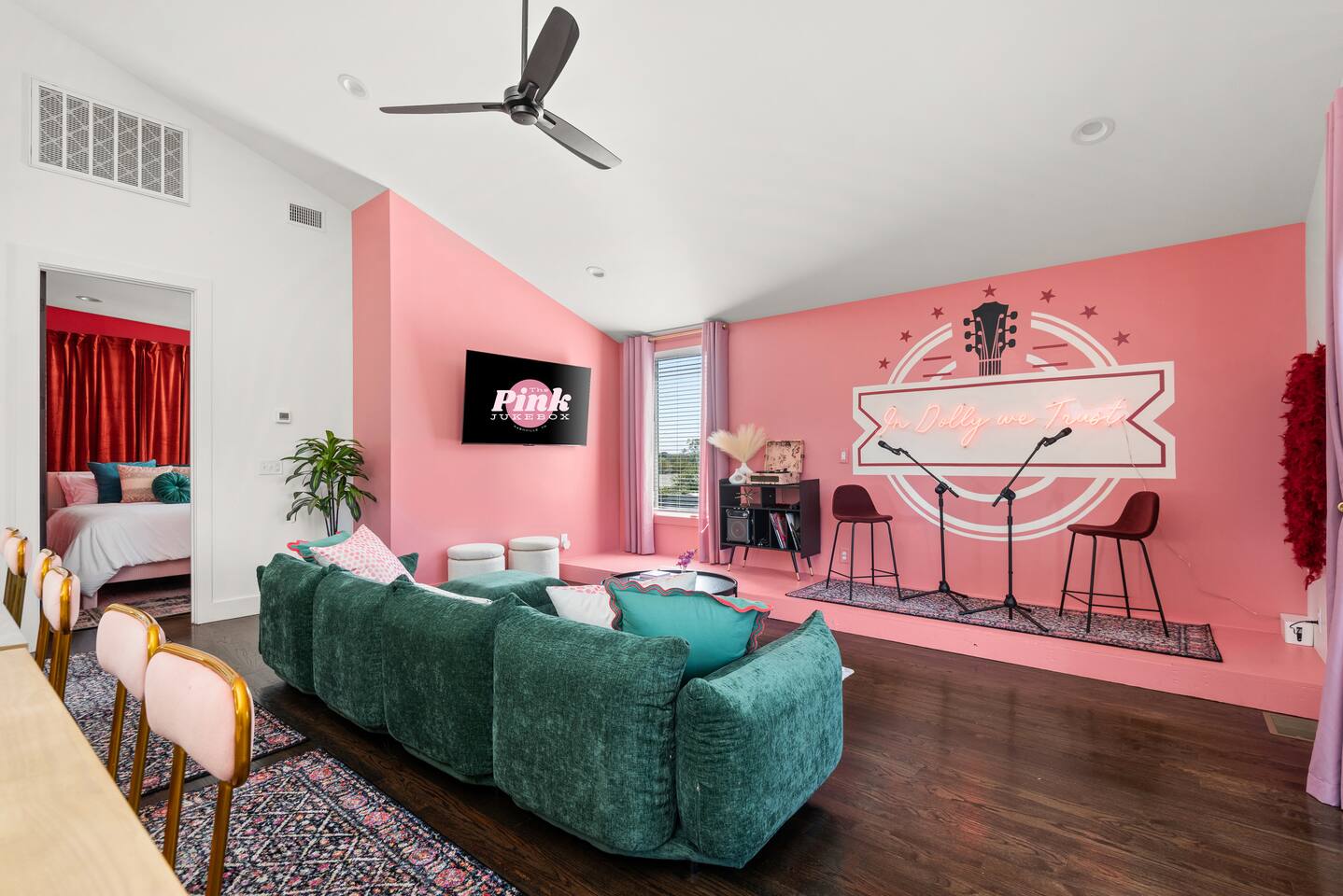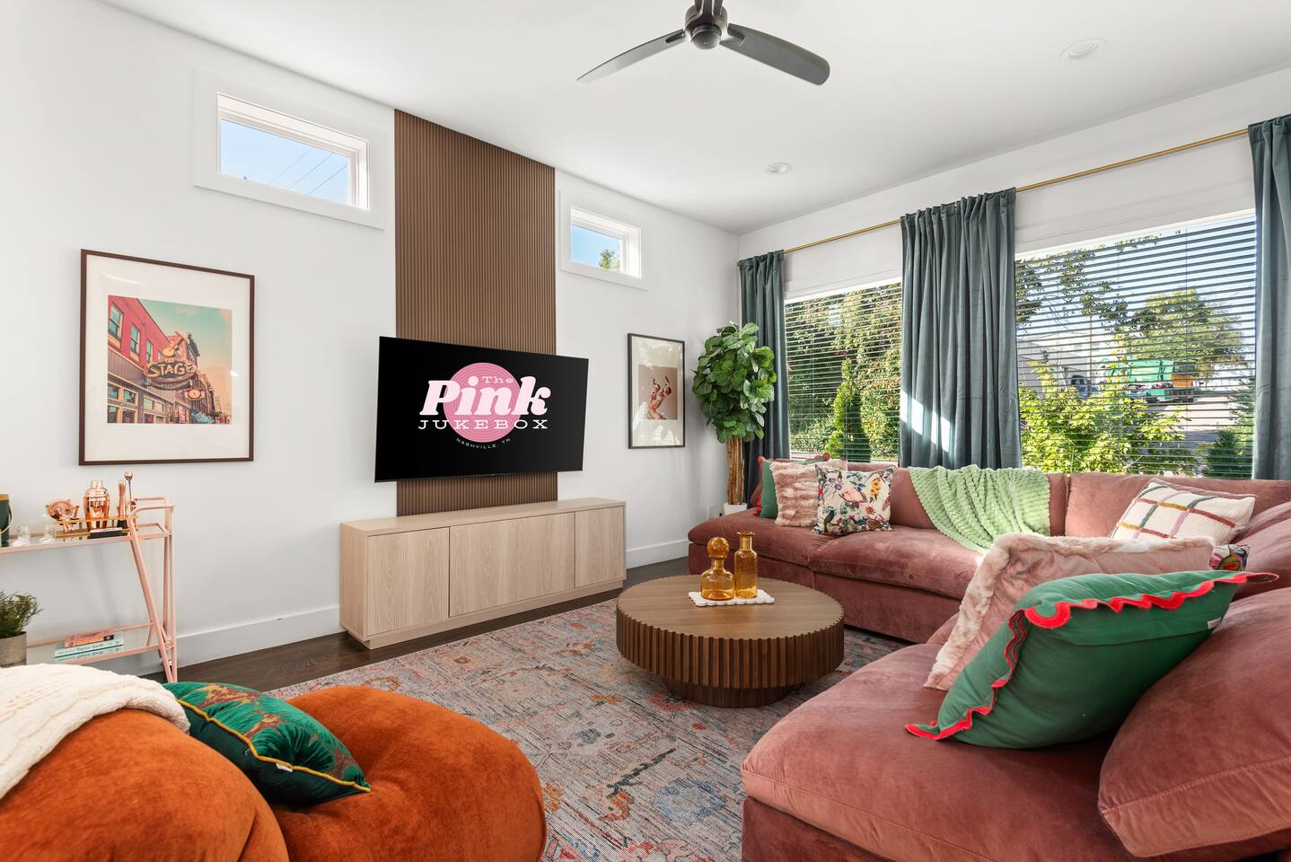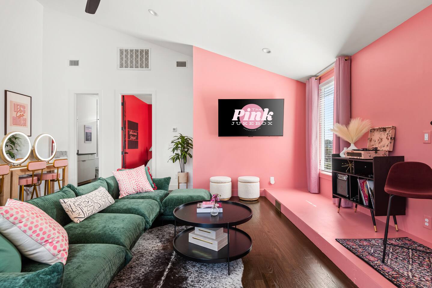 The Pink Jukebox: Your Unforgettable Nashville Group Getaway! 📍 Prime Spot: 10 min--> Broadway, 8 min--> Gulch, 3 min-->12S+ Local Superhosts! 🎤 Sing Loud: Karaoke Stage for Epic Nights. 💄 Get Glam: Prep Stations Ready for Your Broadway Debut. 🤠 Insta-Worthy: Pro Design, Custom Cowgirl Murals Inside. 🔥 Chill Out: Covered Deck & Fireplace for Cozy Gatherings.