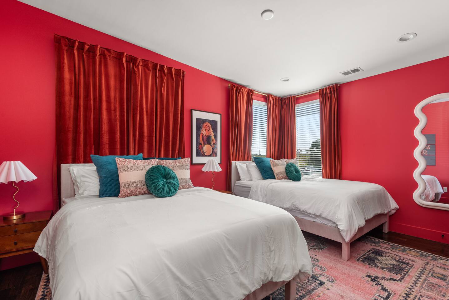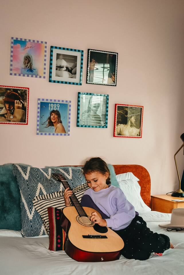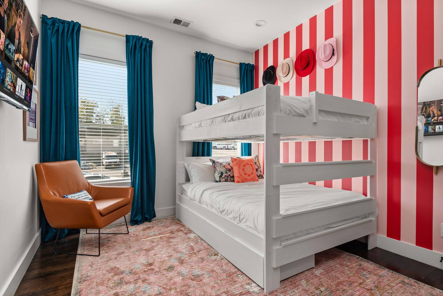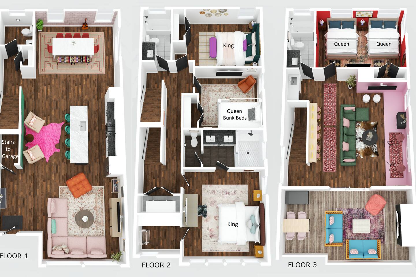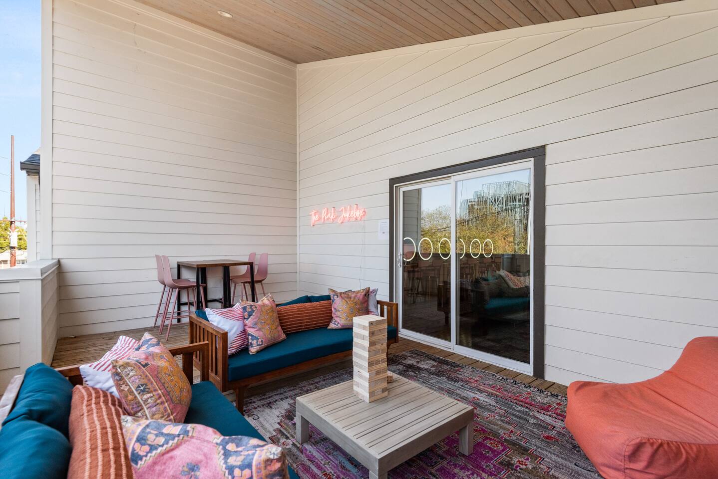 Perfect for: Girl's weekends, family reunions and groups seeking a fun and stylish experience. ⭐️⭐️ Key Features ⭐️⭐️ ★ Custom Murals and Karaoke Stage ★ Glam Station: Equipped with 6 large LED mirrors ★ Stylish Decor: Neon signs, photo-worthy spots and modern amenities ★ Detached Home: No shared walls ★ Outdoor Oasis: Covered deck with fireplace, TV, custom lighting and plenty of seating ★ Spacious Living: 3 floors of living space, including 2 large living areas ★ Parking: 3 cars total; 2 in garage and 1 behind the house ★ Convenient Location: Broadway (10min), 12 South (4 min), The Gulch (8 min), and the airport (10min). ★ Located on a quiet dead end street. ★ Professionally Redesigned in 2025 What our Guests are saying: “If you're thinking about it - DO IT! We have been visiting Nashville regularly for almost a decade and this was our absolute favorite stay” – Emma “The glam stations were what sold me on booking this place. It was so fun to have an area where all the girls can get ready at the same time." – Nicole “This house was absolutely beautiful. I mean it was phenomenal. We walked in and were so amazed. Also it smelled really good all through the house” – Tammy “This place was beyond our expectations!! All the amenities were there! So well stocked and LINENS AND BEDS ARE ABSOLUTELY the best we've been to!” – Joni ⭐️⭐️ Floor Plan ⭐️⭐️ Floor 1: (Dine and Hang) Open floor plan includes living room, fully stocked kitchen with complimentary coffee, tea and cookware. Large dining table (fits 10) with extra seating around the island or in front of the 14' custom Cowgirl mural. Convenient half bath rounds out the space. Floor 2: (Get your Sleep) Bedroom 1 (TSwift Room) King bed with en suite bathroom and large walk in closet. Bedroom 2 (Mural Room) King bed with closet. Bedroom 3 (Bunk Room) 2 Queen beds with closet. Full bathroom and W/D located on this floor. Floor 3: (Sing and Have Fun) Bedroom 4 (Dolly Room) 2 Queen beds with closet Loft with vaulted ceilings, TV, karaoke stage and getting ready stations while you take turns on the mic! Full bathroom also located on this floor. This space opens up to the covered deck with a fireplace, TV and 2 couches (seating for 10). Custom neon sign and bistro lights turn on once the sun goes down. ⭐️⭐️ Amenities ⭐️⭐️ ★ Comfort and Convenience: Keyless entry, fast WiFi, and smart TVs in all bedrooms and common areas. ★ Entertainment: YouTubeTV included for your viewing pleasure. ★ Work Space: Plenty of places to work in the house for those that need to mix work with pleasure. ★ Support: Enjoy exceptional service from a local super host. ★ Privacy: All bedrooms have black out curtains and room darkening shades. We’ve partnered with Bach Babes for ultimate concierge services! Inquire for more details. You’ll have access to: ★ Pre Arrival Decorating ★ Fridge Stocking ★ Mimosa Bars ★ Goodie Bags ★ Itinerary Planning ★ Exclusive discounts around town Dates Booked? Check out our other listing The Vinyl Suite for availability! Permit#2025-01-05-620
