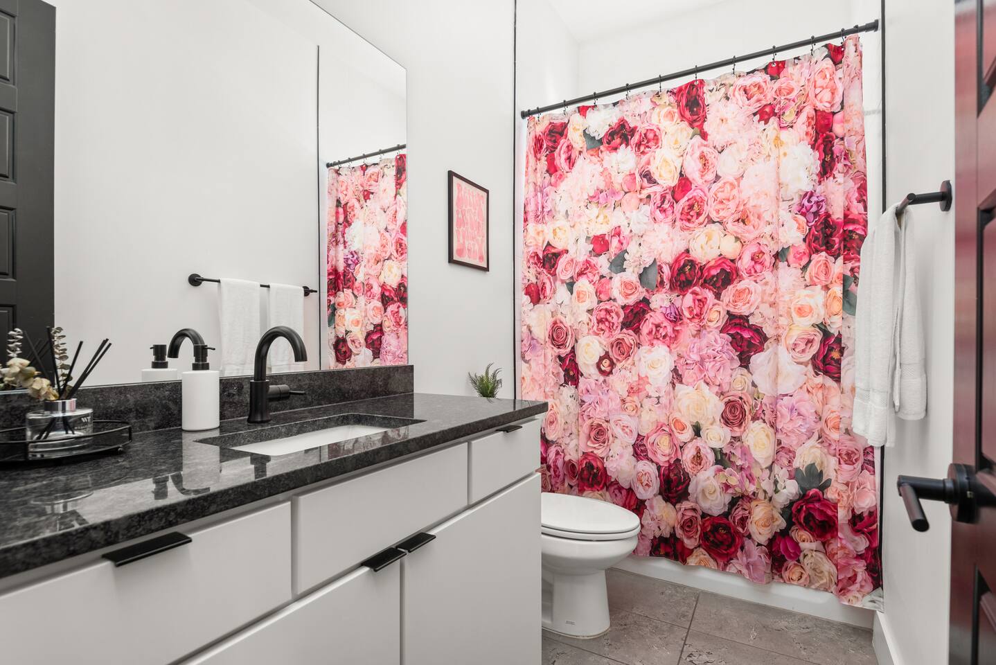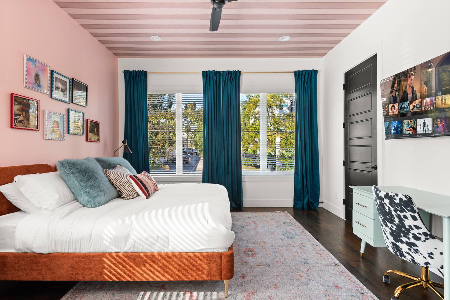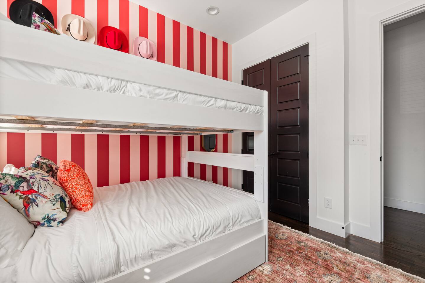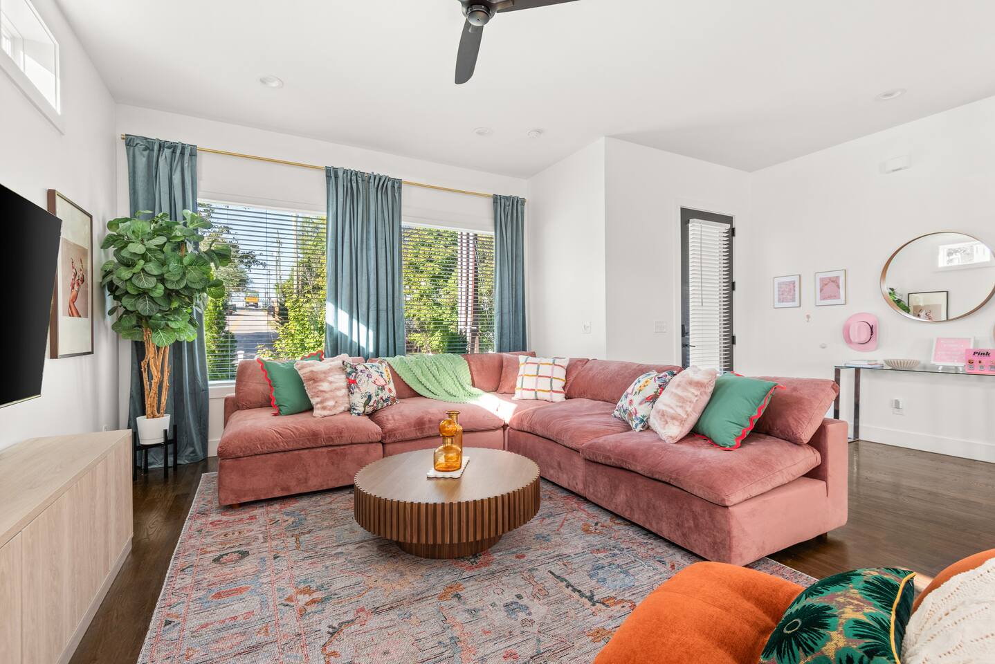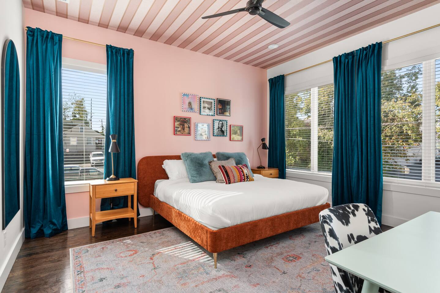 Perfect for: Girl's weekends, family reunions and groups seeking a fun and stylish experience. ⭐️⭐️ Key Features ⭐️⭐️ ★ Custom Murals and Karaoke Stage ★ Glam Station: Equipped with 6 large LED mirrors ★ Stylish Decor: Neon signs, photo-worthy spots and modern amenities ★ Detached Home: No shared walls ★ Outdoor Oasis: Covered deck with fireplace, TV, custom lighting and plenty of seating ★ Spacious Living: 3 floors of living space, including 2 large living areas ★ Parking: 3 cars total; 2 in garage and 1 behind the house ★ Convenient Location: Broadway (10min), 12 South (4 min), The Gulch (8 min), and the airport (10min). ★ Located on a quiet dead end street. ★ Professionally Redesigned in 2025 What our Guests are saying: “If you're thinking about it - DO IT! We have been visiting Nashville regularly for almost a decade and this was our absolute favorite stay” – Emma “The glam stations were what sold me on booking this place. It was so fun to have an area where all the girls can get ready at the same time." – Nicole “This house was absolutely beautiful. I mean it was phenomenal. We walked in and were so amazed. Also it smelled really good all through the house” – Tammy “This place was beyond our expectations!! All the amenities were there! So well stocked and LINENS AND BEDS ARE ABSOLUTELY the best we've been to!” – Joni ⭐️⭐️ Floor Plan ⭐️⭐️ Floor 1: (Dine and Hang) Open floor plan includes living room, fully stocked kitchen with complimentary coffee, tea and cookware. Large dining table (fits 10) with extra seating around the island or in front of the 14' custom Cowgirl mural. Convenient half bath rounds out the space. Floor 2: (Get your Sleep) Bedroom 1 (TSwift Room) King bed with en suite bathroom and large walk in closet. Bedroom 2 (Mural Room) King bed with closet. Bedroom 3 (Bunk Room) 2 Queen beds with closet. Full bathroom and W/D located on this floor. Floor 3: (Sing and Have Fun) Bedroom 4 (Dolly Room) 2 Queen beds with closet Loft with vaulted ceilings, TV, karaoke stage and getting ready stations while you take turns on the mic! Full bathroom also located on this floor. This space opens up to the covered deck with a fireplace, TV and 2 couches (seating for 10). Custom neon sign and bistro lights turn on once the sun goes down. ⭐️⭐️ Amenities ⭐️⭐️ ★ Comfort and Convenience: Keyless entry, fast WiFi, and smart TVs in all bedrooms and common areas. ★ Entertainment: YouTubeTV included for your viewing pleasure. ★ Work Space: Plenty of places to work in the house for those that need to mix work with pleasure. ★ Support: Enjoy exceptional service from a local super host. ★ Privacy: All bedrooms have black out curtains and room darkening shades. We’ve partnered with Bach Babes for ultimate concierge services! Inquire for more details. You’ll have access to: ★ Pre Arrival Decorating ★ Fridge Stocking ★ Mimosa Bars ★ Goodie Bags ★ Itinerary Planning ★ Exclusive discounts around town Dates Booked? Check out our other listing The Vinyl Suite for availability! Permit#2025-01-05-620